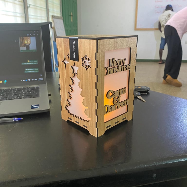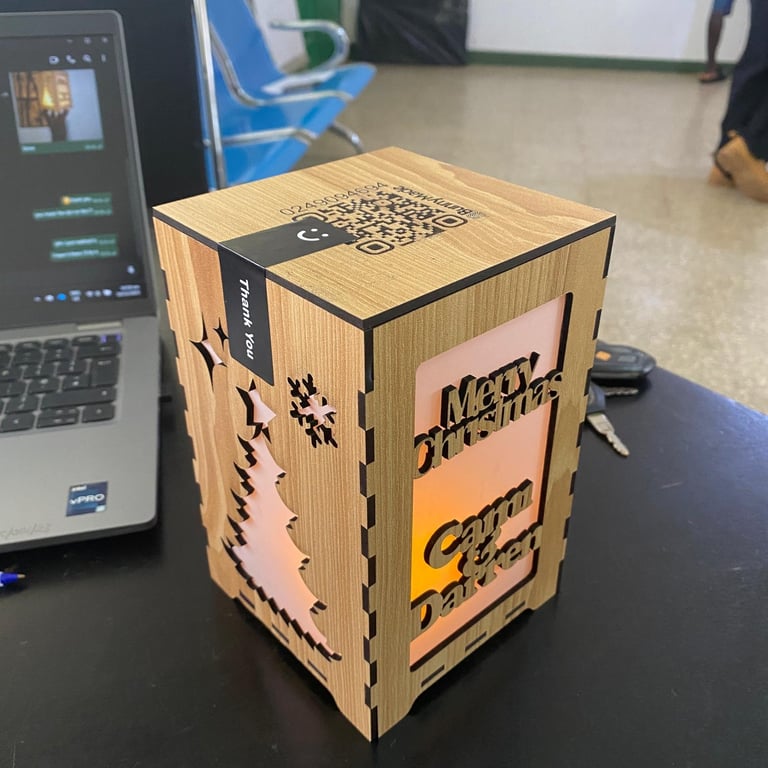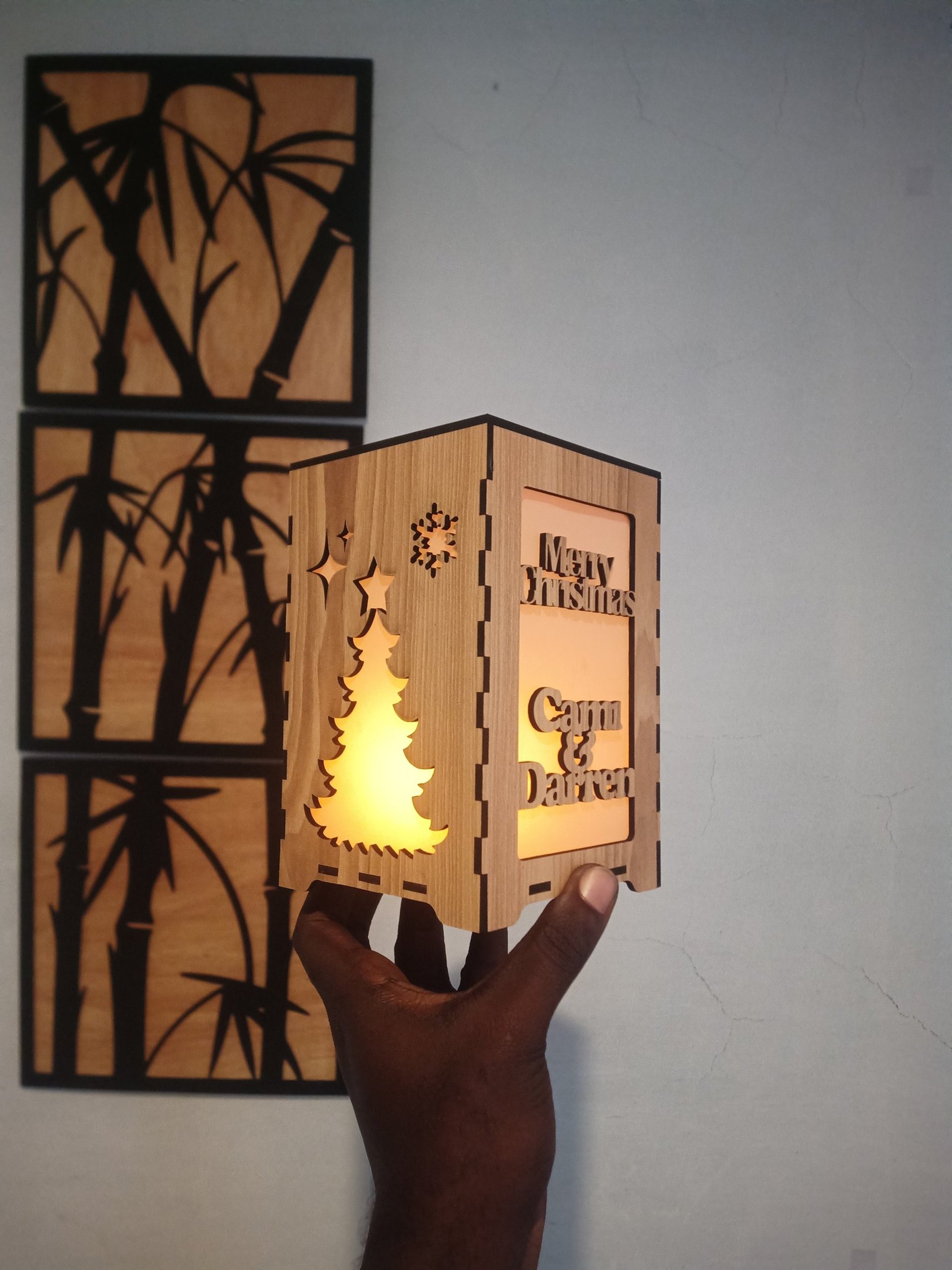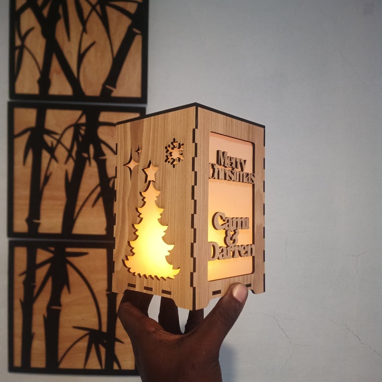 Each lamp is built from high-quality wood with precise, interlocking joints. We use advanced laser cutting to create custom shapes, names, and messages.